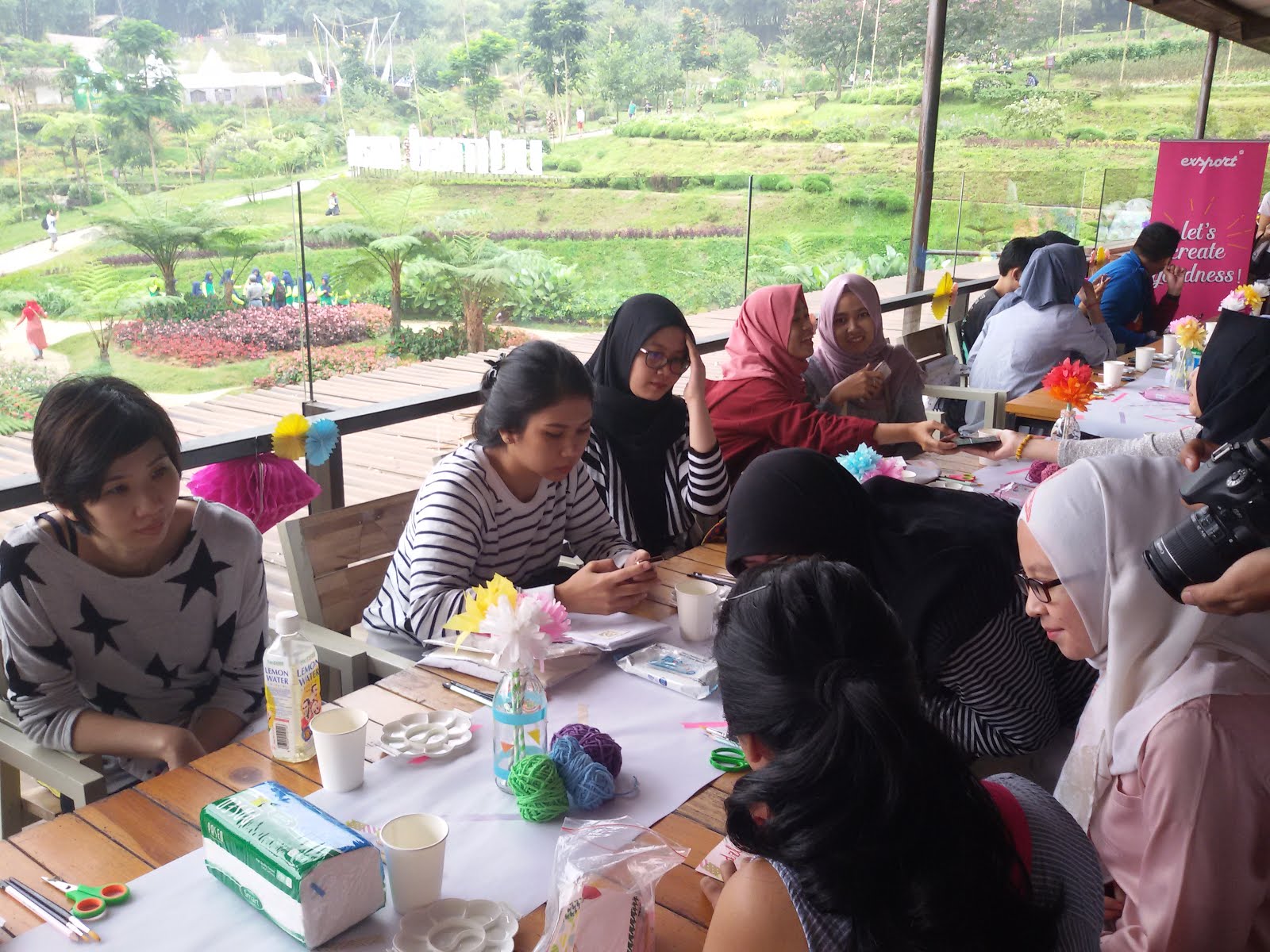 Yuhuu~ sampai Dusun Bambu bahagia banget liat pemandangan yang asri :) walaupun perut dangdutan karena kelaparan belum sarapan, peserta tetep happy karena pemandangannya menyenangkan. Bau makanan di Pasar Khatulistiwa godaan banget sih :") tapi peserta kembali luruskan niat setelah liat meja workshop yang udah ditata cantik banget, apalagi udah liat goodiebag dari Exsport, heuheu~ *sedikit mengabaikan suara perut yang sudah bertalu-talu tak menentu